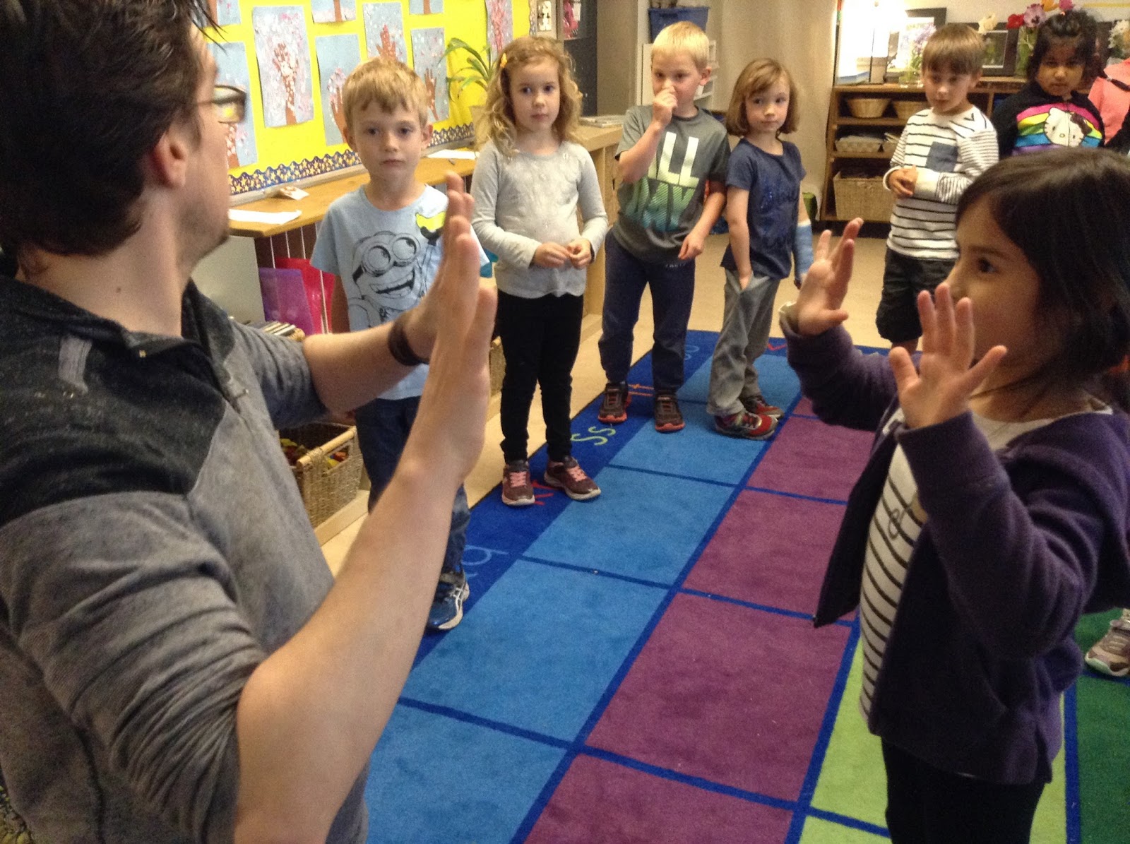 Then it was time for "Story Time", where each person on the chairs took turns adding a sentence to the story. We had some pretty silly stories today!