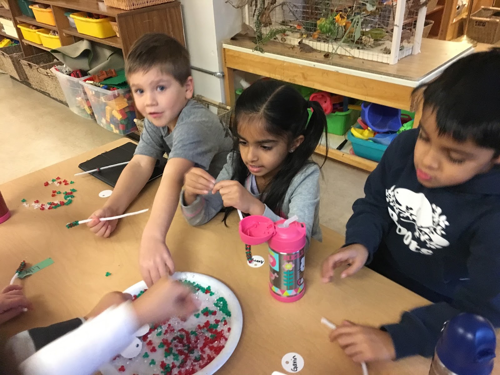 We made lady cane ornaments with beads today, 2 different kinds. Next week, on the 8th of December, several classes are going to go behind the school to Gerry's Garden to decorate a tree for Christmas and to show our appreciation for Gerry and the garden. Many of our classes are making decorations to hang on the tree. Our contribution will be beaded candy canes. We will be hang our ornaments in the afternoon. Right at 3:00, we invite families to gather around the tree. The choir is going to sing and the band is going to play and Gerry will be there to see the tree. Maybe on your way to your car or while you're walking home, you could drop by and take part.