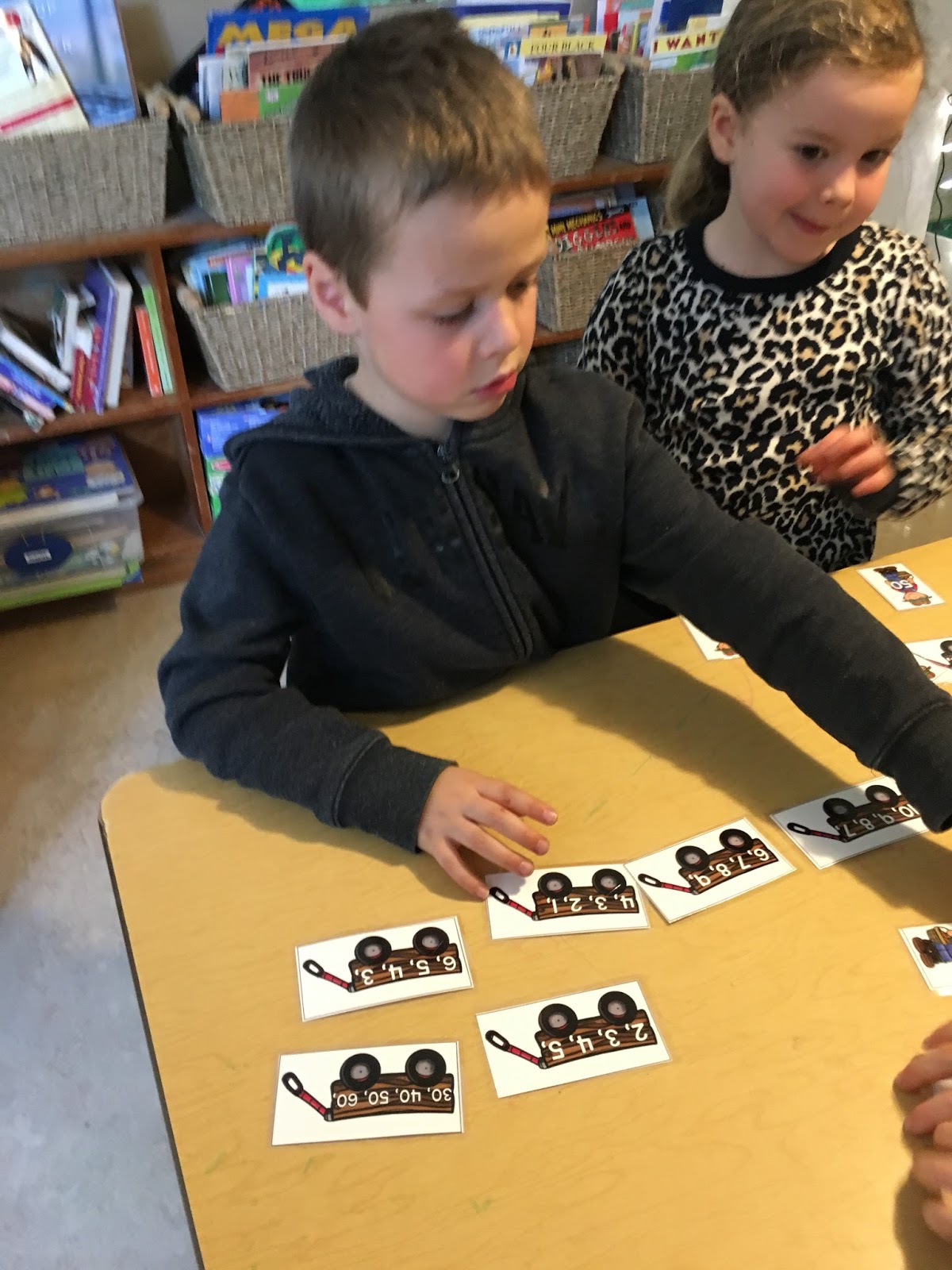 We built numbers using tens and ones (which were on pictures of carrots, that we matched to the number on the dirt card.