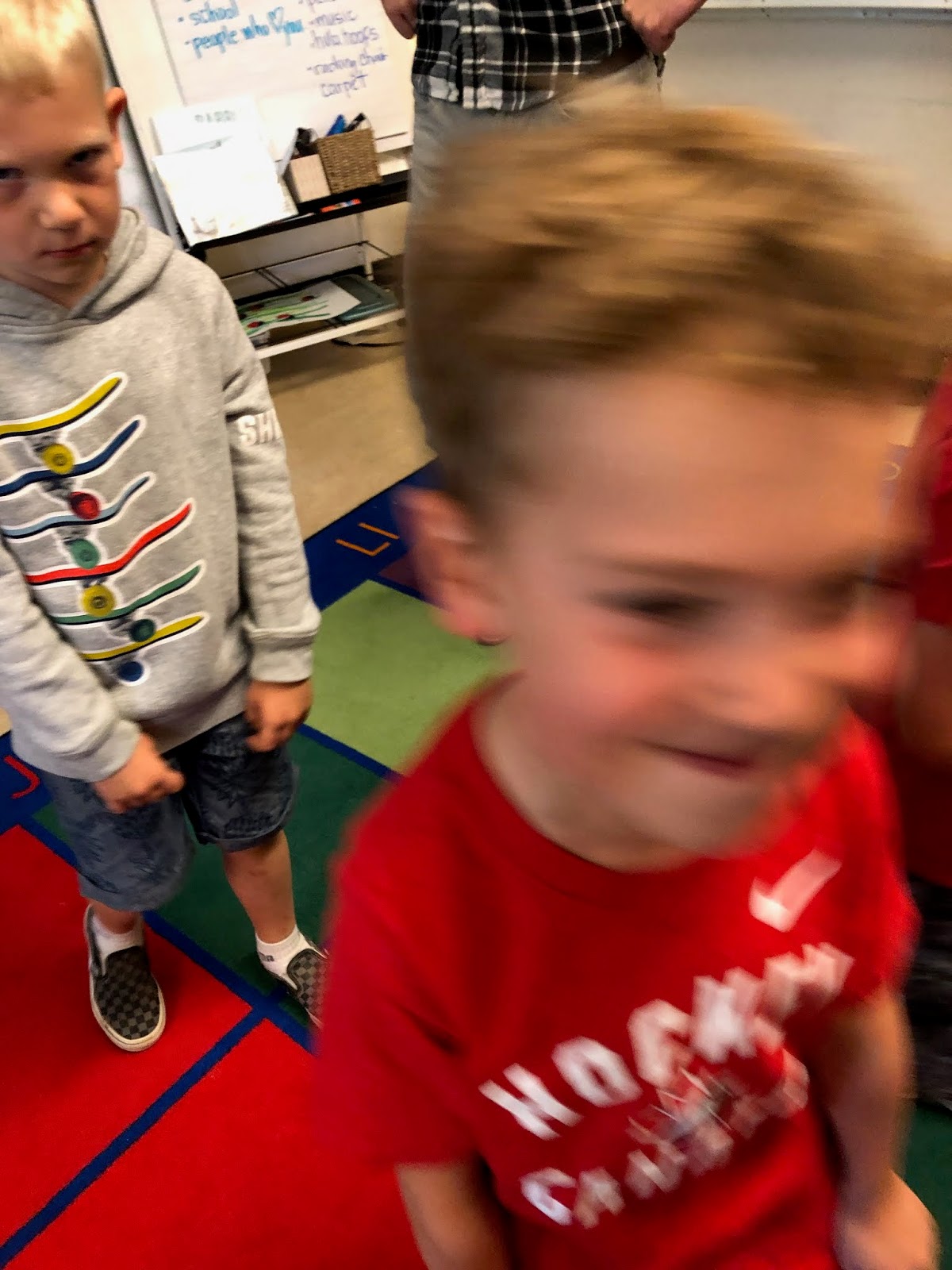 Then we explored feelings and moved around the carpet while converting different emotions. This is happy....